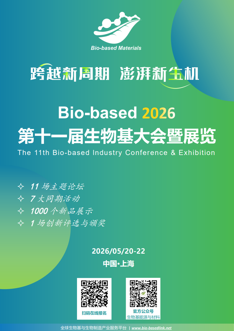「DT新叶奖」是专注于生物基领域创新的全球化、综合性奖项,致力于挖掘、展示、表彰生物基行业的好产品、好企业,被誉为生物基行业的“奥斯卡”。「2026(第四届)DT新叶奖」将于第11届生物基大会暨展览正式揭晓,并举行颁奖典礼。