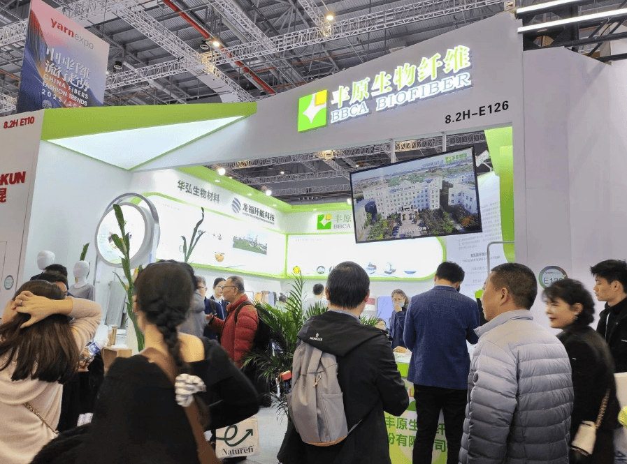 安徽丰原生物纤维股份有限公司代表丰原集团参展,丰原集团在PLA纺织材料方面的定位是生产PLA切片和短纤维,产能达40万吨,已与龙福环能科技、苏州青沐、水星家纺、特步集团等多家上下游合作伙伴共同开发T恤、冲锋衣和家纺类产品。