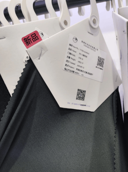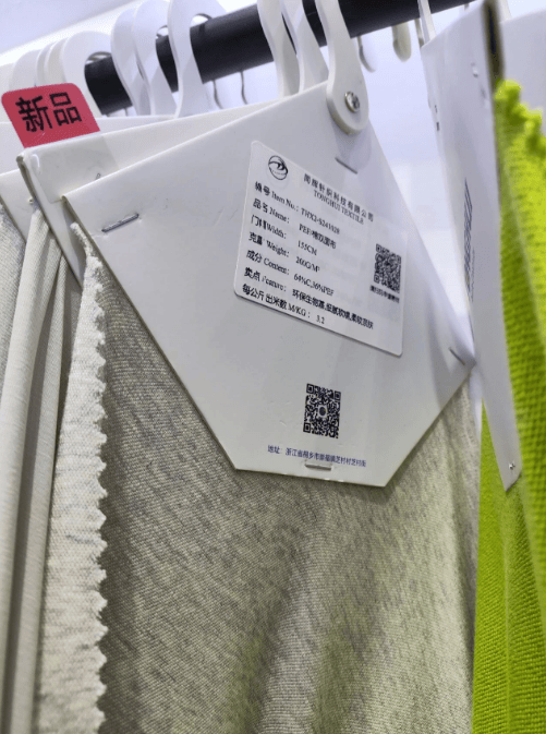 同辉纺织展出多款PEF为基材的面料,包括PEFG双面布、PEF/棉双面布、PEFG棉毛布等。