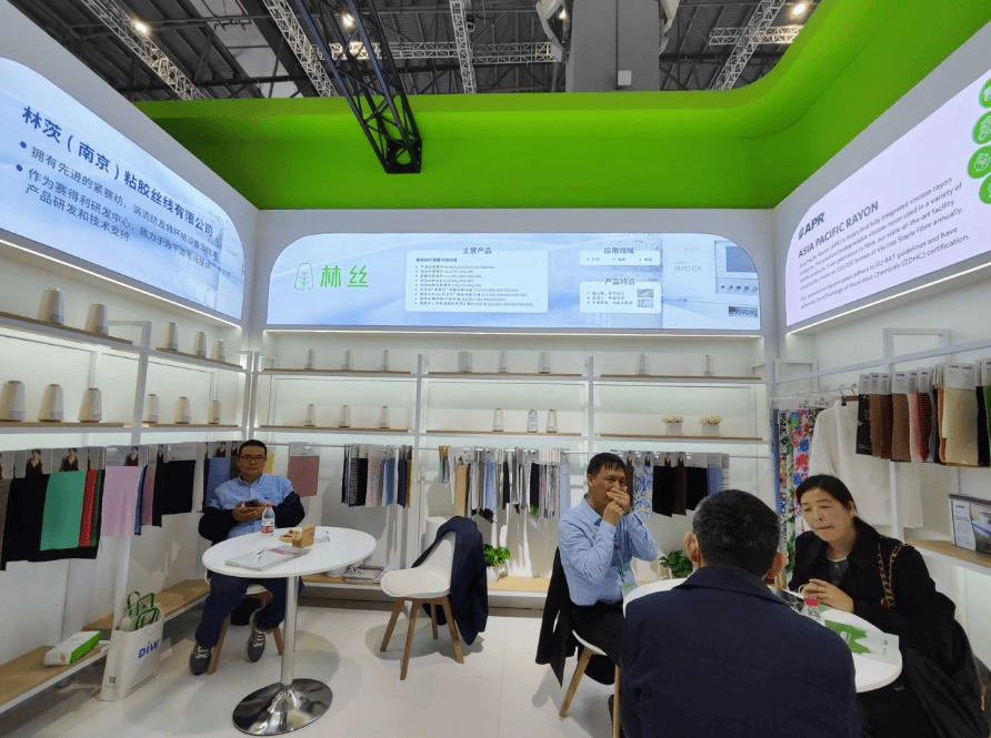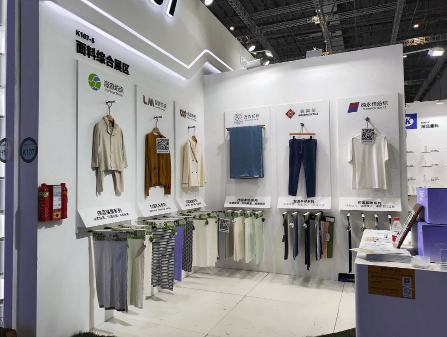 作为展会"顶流",莱赛尔面料占据半壁江山。其天然抗菌、可降解特性,已成为H&M、ZARA等快时尚巨头的“热门单品”,国内莱赛尔纤维的代表性生产商赛得利、通用技术均在黄金地段展出。