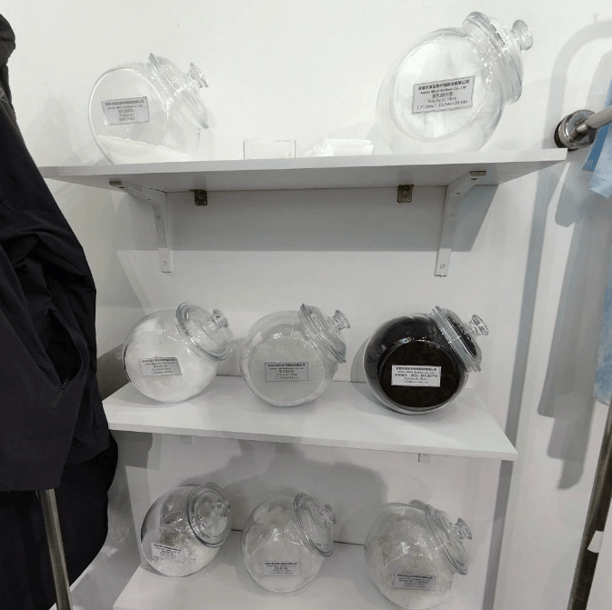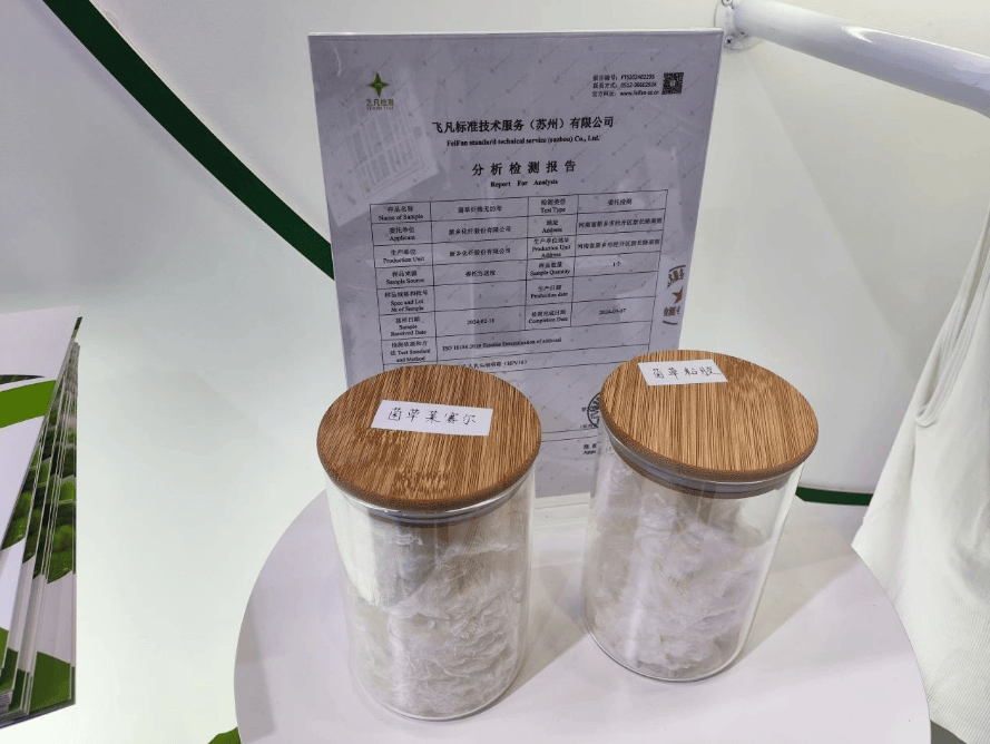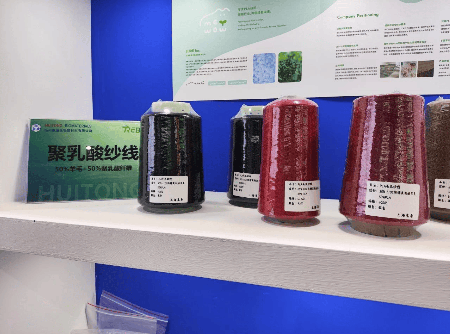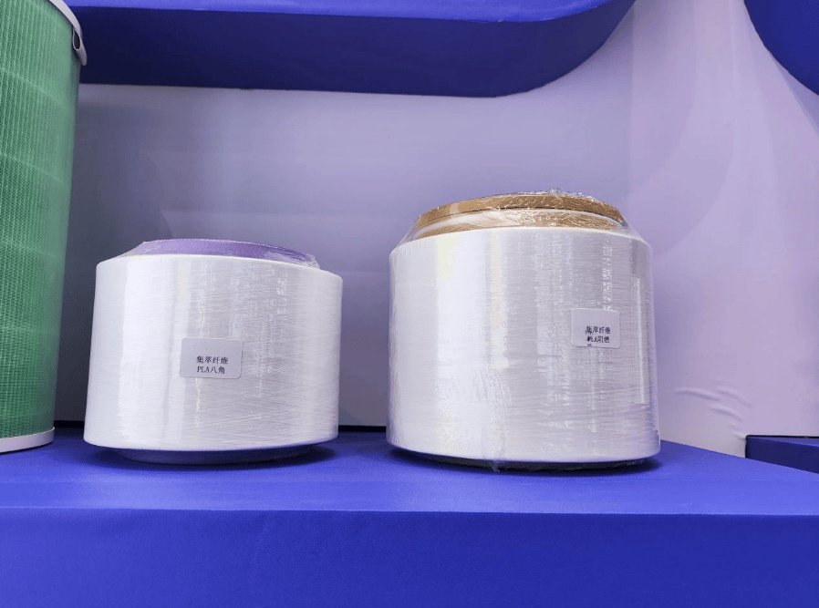 江苏集萃先进纤维材料研究所有限公司展出的八角PLA纤维(截面为八角形)、阻燃PLA纤维(用于需要降解又有阻燃要求的场景,如:草原帐篷毛毡)。