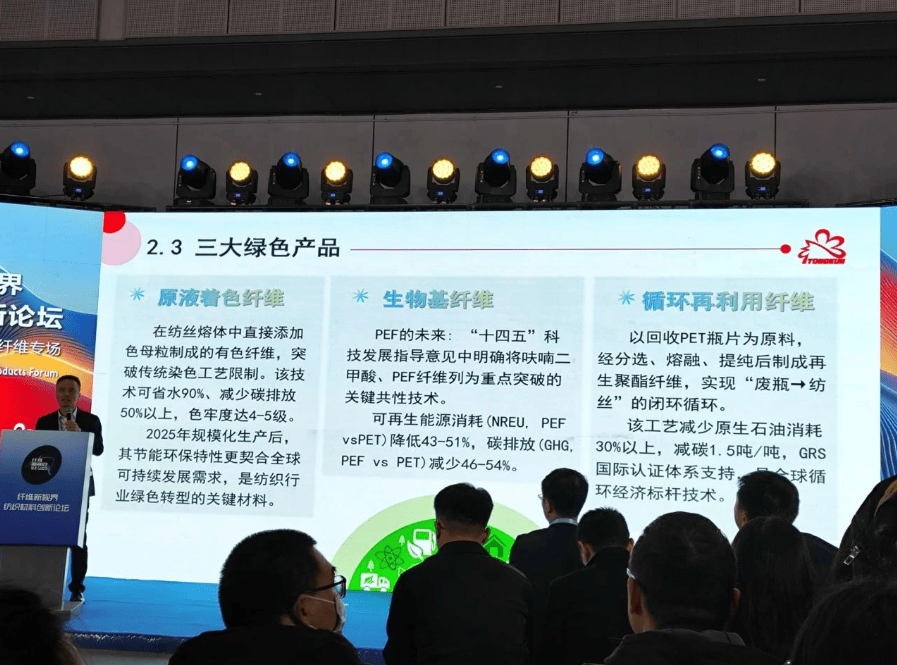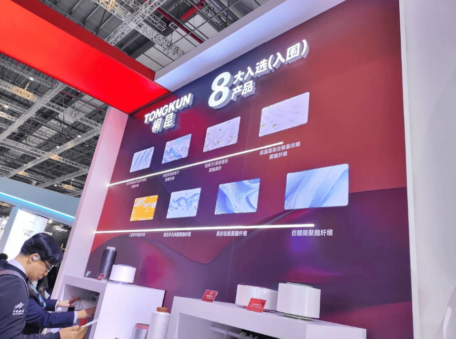 桐昆集团股份有限公司(简称:桐昆),已布局三大绿色产品,PEF纤维是其中之一,也是入选本届纤维流行趋势的8大产品之一,在展台占据C位,不仅如此,桐昆还在展会同期论坛 纤维新视界-纺织材料创新论坛隆重介绍PEF纤维产品。