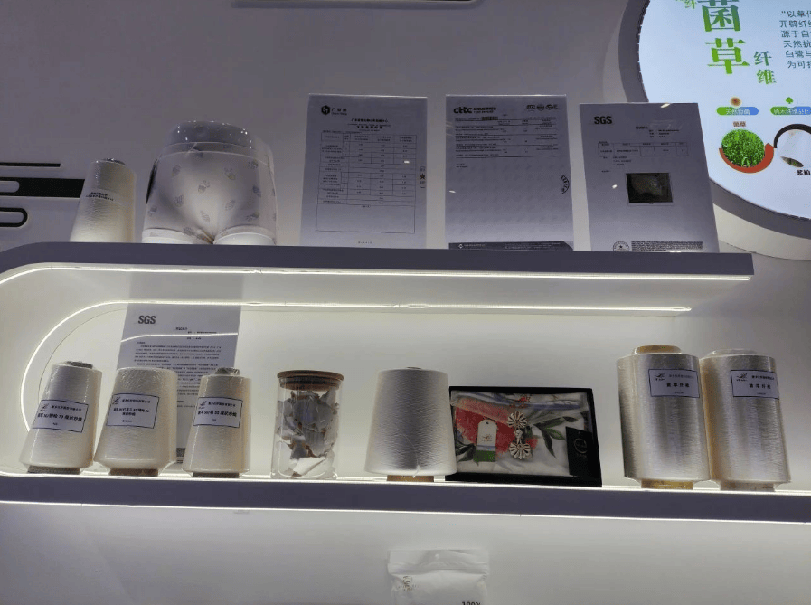 同辉纺织展出多款菌草纤维面料,包括:菌草汗布、菌草莱赛尔汗布等。