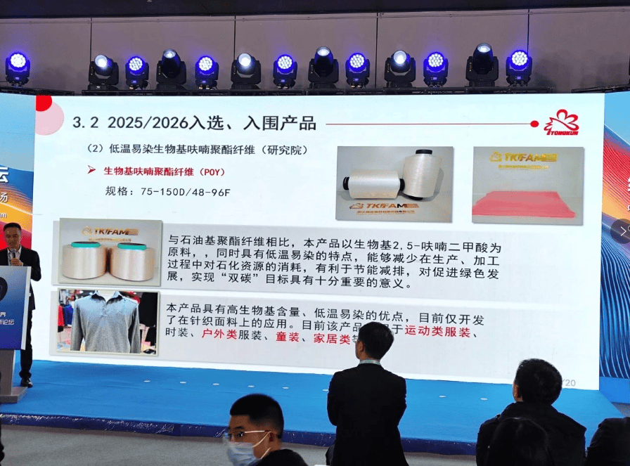 该产品由中科国生-桐昆-同辉合作开发完成,中科国生提供PEF原料,桐昆制成纤维,同辉最终加工成布料并合作推广应用